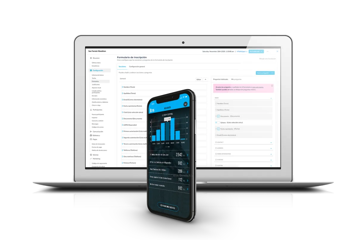La información de tus inscripciones está disponible en tiempo real siempre desde la web. Puedes consultar estadísticas de tus inscripciones y descargar los datos de tus inscritos siempre que quieras